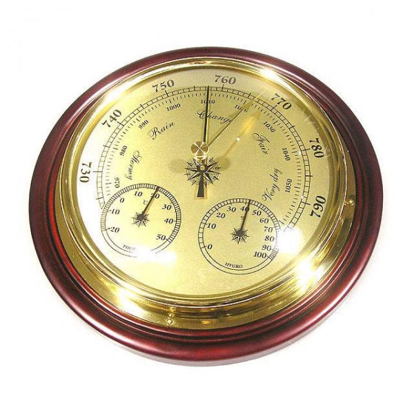 Барометр B 390 (2–1017) представляет собой механический стрелочный прибор, работающий от воздействия атмосферного давления на анероидный чувствительный элемент. Корпус прибора изготавливается из дерева. При помощи ручки, расположенной на стекле барометра, совместите фиксирующую стрелку с показывающей. Если атмосферное давление резко падает (показывающая стрелка отклоняется влево), следует ожидать усиление ветра, осадков, а зимой повышение температуры. При повышении давления (стрелка отклоняется вправо) можно ожидать ясной погоды, зимой- холодной. Во избежание коррозии, которая может привести к нарушению работоспособности, не рекомендуется хранить и эксплуатировать барометр в помещении, где находятся кислоты и щелочи, а также в помещении с повышенной влажностью.