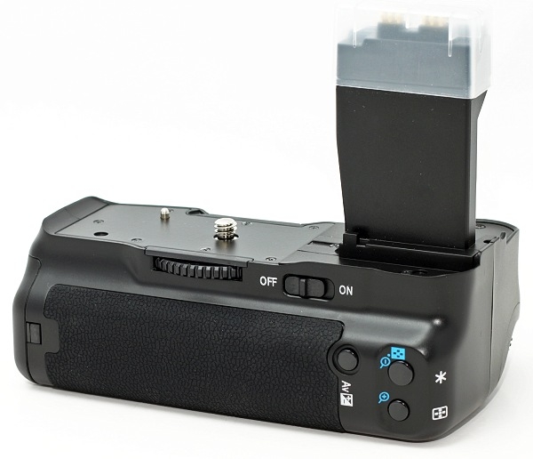 Батарейный блок Phottix BG-600D для фотоаппаратов Canon EOS 550D, 600D, 650D повышает скорость съёмки и увеличивает время автономной работы. Эргономичная конструкция рукоятки батарейного блока позволяет более удобно держать фотокамеру при съёмке в вертикальном положении. В качестве источника питания блока используются шесть стандартных батарей типа АА или две специальные аккумуляторные батареи LP-E8 (в комплект не входят). Для удобства съёмки вертикальных кадров, на рукоятке расположены дополнительная спусковая кнопка затвора, кнопка включения автофокуса, кнопки АЕ lock/FE lock/AF point selection, а также диск управления. Имеется встроенный разъём для крепления штатива. Она также снабжена кнопкой затвора для вертикальной съёмки и главным диском управления для того чтобы было возможно выполнять съёмку как при горизонтальном захвате. Использование аккумуляторной рукоятки