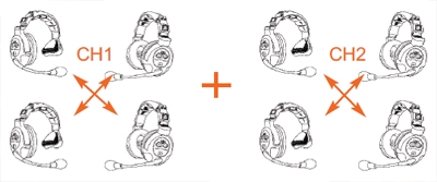 • Двухканальный режим конференц-связи. Две группы пользователей до 4-х человек могут общаться отдельно или все вместе в режиме конференц-связи.