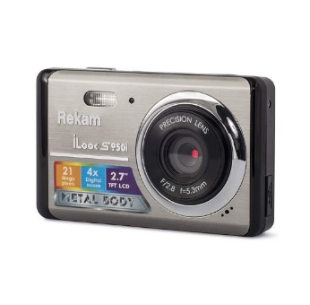 Цифровая камера Rekam iLook S950i (темно-серый металлик) Компактная фотокамера Rekam iLook S950i легко помещается в кармане и небольшой сумке, что позволяет в любой момент иметь при себе функциональную камеру с высоким качеством съёмки. Разрешение 21 мегапикселей, обеспечивает высокую детализацию и четкость изображения. Функция стабилизации изображения позволяет делать моментальные снимки максимально устраняя дрожание камеры. Разнообразные режимы съёмки помогают получить отличные фотографии в любых условиях – на улице и в помещении, при ярком или недостаточном свете. Вы сможете выбрать специальные настройки для особых условий – вечеринка, пляж, ночная, спортивная и пейзажная съёмка. Функция «определения лица» позволяет камере автоматически фокусироваться на лицах, как основных объектах съёмки, благодаря чему вы сможете снимать отличные портреты и групповые снимки. В режиме «определение улыбки» камера автоматически производит съёмку, когда ваша модель начинает улыбаться. Кроме фотосъемки камера Rekam iLook S950i позволяет снимать видеоклипы с HD-разрешением. Поддержка карт памяти до 32 Гб дает возможность не заботится об экономии места.