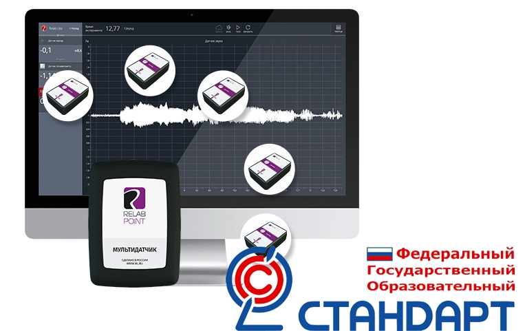 Цифровая лаборатория Relab Point II (Релаб Поинт) Начальная школа (Комплект Стандартный: Kids «Экология» (мультидатчик - 1 шт.) в составе: Датчик температуры почвы, Датчик влажности почвы, Датчик электромагнитного излучения, Датчик УФ излучения и окружающего света, Датчик уровня шума, Kids «Погода»(мультидатчик - 1 шт.) в составе: Датчик температуры жидкости и газа, Датчик освещенности, Датчик относительной влажности, Датчик атмосферного давления (барометр) и температуры окружающей среды; Kids «Здоровье»(мультидатчик - 1 шт.) в составе: Датчик пульса, Датчик частоты дыхания, Датчик артериального давления, Датчик температуры тела; Датчик скорости потока воздуха; Датчик электронный компас; кейс для хранения, паспорта на каждый датчик, краткое руководство и методические рекомендации, кабель-рулетка, USB-накопитель, ПО)