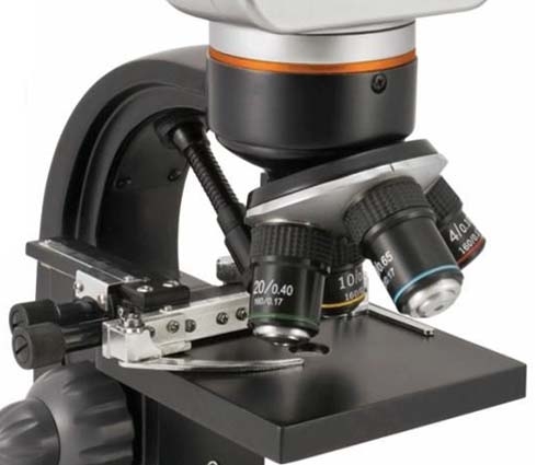 Это настоящий прорыв в технологии изготовления микроскопов. Этот биологический микроскоп инновационной конструкции имеет вместо традиционного окуляра жидкокристаллический дисплей, который обеспечивает легкий и удобный просмотр как для одного человека, так и для небольшой группы, а встроенная цифровая камера микроскопа может снимать изображения и короткие видеоролики. Благодаря этим особенностям микроскоп отлично подходит для исследования самых различных объектов (частей растений и животных, волокон тканей, бактерий, плесени, дрожжей и т.п.). Микроскоп может найти широкое применение в учебном процессе, как в школе, в колледже так и высших учебных заведениях. Такой микроскоп может использоваться и для научных изысканий, в промышленных лабораториях. Особенности микроскопа: