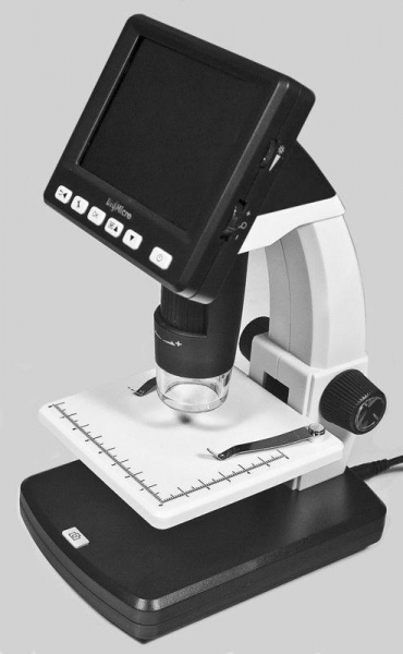 Цифровой микроскоп DigiMicro LCD со встроенным ЖК дисплеем и 5-ти мегапиксельной камерой. Может использоваться для исследования объектов автономно без подключения к компьютеру. Питание от литий-ионного аккумулятора, время работы от одной зарядки до 2-х часов. Изображение исследуемых объектов сохраняется наMicroSD карте памяти нажатием всего одной кнопки в виде фото- или видео файлов. Записанные файлы можно передать на ПК или ноутбук через порт USB 2.0. С помощью AV-выхода возможно просматривать изображения на телевизоре или проекторе, что может быть полезным для конференций, презентаций, а так же в процессе обучения. С помощью специального программного обеспечения DigiMicro LCD может производить измерения линейных размеров, площадей, углов и радиусов исследуемых объектов.