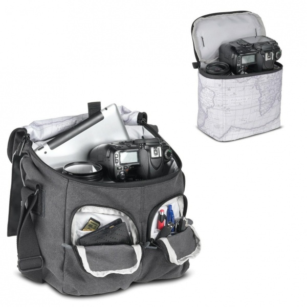 Функциональная повседневная небольшая сумка серии Walkabout. Предназначена для хранения личных вещей, фотокамеры и планшета. Множество дополнительных карманов позволяет удобность разместить различные аксессуары. В комплекте дополнительный чехол для камеры. Размеры: внешние 24х28х15 см, внутренние 23х27х11,5 см, вес 790 гр.