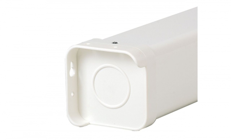 - корпус экрана с квадратным сечением выполнен из стали с белым полимерным покрытием. Торцевые заглушки корпуса изготовлены из ударопрочного белого пластика или металла для экрана с большим размером