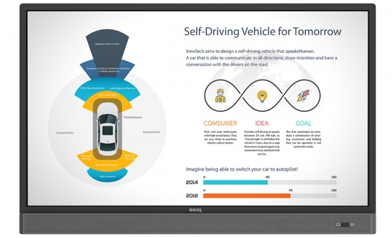 Интерактивный дисплей BenQ Interactive Panel LCD 55" (140 см) RP553K сочетает в себе все функции интерактивной доски, но не использует проектор для отображения информации. Больше не нужно настраивать проектор, закреплять его на потолке, прокладывать провода. BenQ RP553K из-за отсутствия проектора не имеет никакой тени, что является огромным преимуществом над интерактивной доской. Подключение данного интерактивного дисплея происходит также как у обычного компьютерного монитора, кроме того имеется встроенный Wi-Fi модуль.