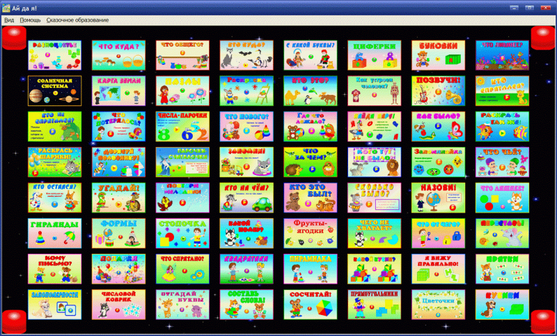 «Ай да Я!» - это комплект интерактивных обучающих программ для индивидуальных и групповых занятий взрослых с детьми 5-7 лет. Программы имеют интуитивно понятный для детей интерфейс, адаптированный для использования на устройствах с сенсорными экранами. Комплект содержит множество игровых заданий разного уровня сложности и многочисленные версии их выполнения. Кроме игр в комплект включены тренажёры с упражнениями по русскому языку и математике для подготовки будущих первоклассников. По тематике комплект разделён на четыре блока: Чтение, Счет, Игры и Рисование.
