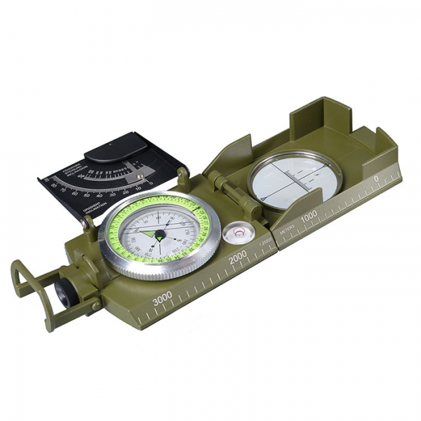 Компас удобно использовать как в открытом, так и закрытом виде (благодаря просмотровому окошку в крышке и выступающему кольцу для выставления азимута). В окошке вытравлена угломерная шкала для определения расстояния между видимыми объектами, формулы приведены на задней стороне корпуса компаса. На боковых частях компаса размечены 15 см линейка и линейка с масштабом 1:25000. Жидкостный уровень и штативная резьба 1/4" позволяют установить компас на штатив с точным выставлением линии горизонта. Компас поставляется в комплекте с нейлоновым чехлом на кнопке.