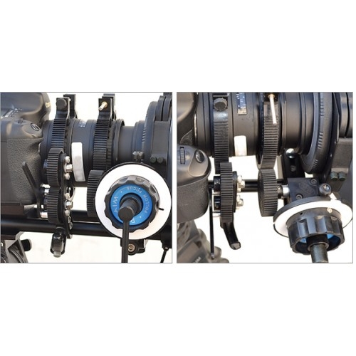 • Рельсовая система регулируется по высоте. Таким образом, уровень высоты камеры зависит от используемых аксессуаров (фоллоу фокус, компендиум и т.д.)