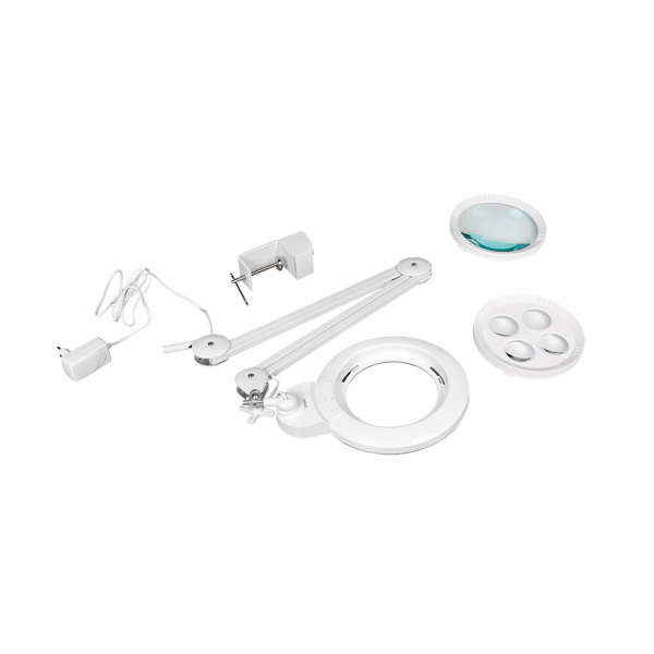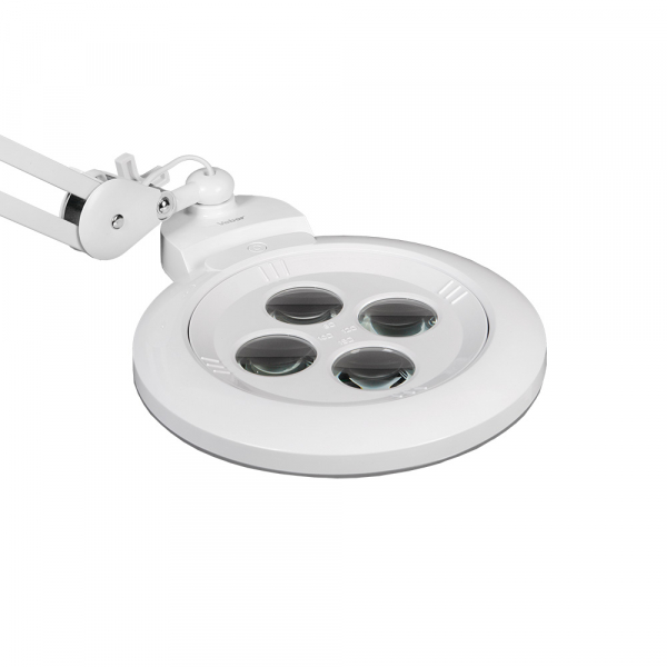 Лупа-лампа Veber 8608D LED Bi-color со сменными линзами на струбцине с регулировкой яркости и цветовой температуры, позволяет удобно работать с микро и мини электронными компонентами или печатными платами с плотным монтажом. Для использования лампы-лупы косметологами, важную роль играют возможность получения бестеневого освещения и возможность настройки цветовой температуры, так как цветовая температура — один из самых важных параметров осветителя. Она имеет влияние не только на восприятие света человеческим глазом, но и на цветопередачу окружающих предметов. Лампа найдёт применение в ювелирных мастерских, в химических лабораториях, полиграфии, филателии, ювелирном деле, а также при работе с документами. Кроме того, поможет в бытовых целях — для чтения, рисования, шитья, вышивания, моделирования — везде, где требуется хорошее освещение поля зрения и возможность выбора необходимого увеличения.