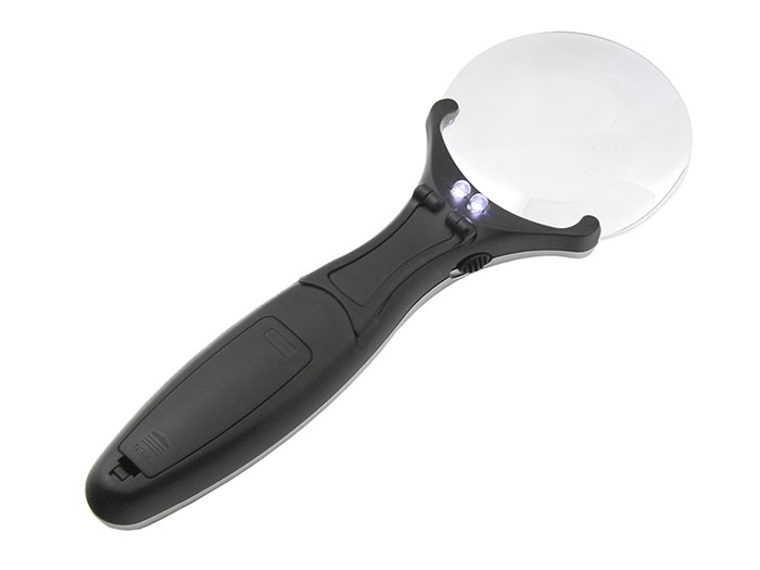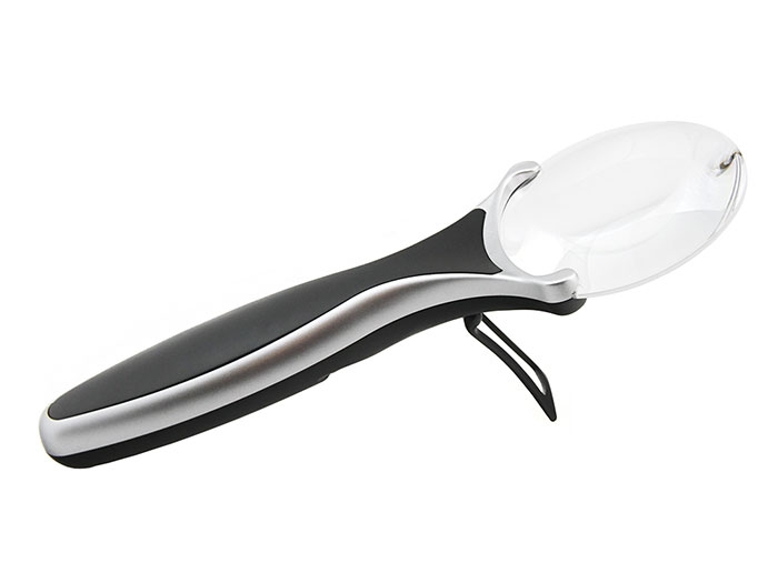 Конструкция лупы содержит выкидную подпорку для установки на плоскую поверхность. Подсветка — два светодиода. Чехол в комплекте. Питание — батарейки АА 2 шт. в комплект не входят. Технические характеристики Увеличение, крат: 3 Диаметр линзы, мм: 75 Материал линзы: акрил Материал корпуса: пластик Питание: 2 батарейки AA 1.5V Вес, г: 77 |