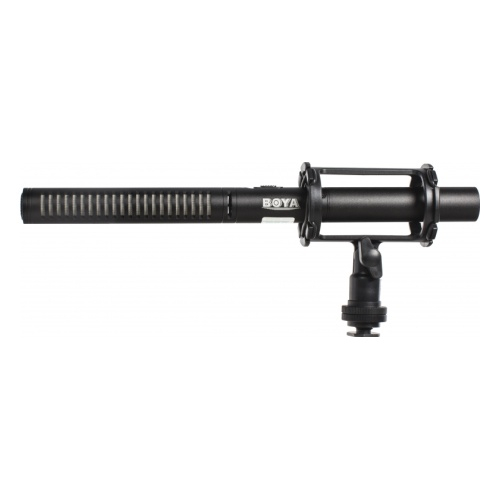 Компактный направленный микрофон-пушка, для эксплуатации с DSLR и видеокамерами, а также с портативными рекордерами. С целью сужения направленности производитель значительно увеличил длину микрофона. В результате этот микрофон очень качественно снимает звук в зоне захвата и абсолютно не восприимчив к посторонним шумам за ее пределами. Переключаемый фильтр 80Гц высоких частот в значительной степени расширяет возможности Boya BY-PVM1000. Устройство комплектуется ворсистой ветрозащитой и антивибрационным креплением с возможностью установки на штатив или "горячий башмак" камеры.