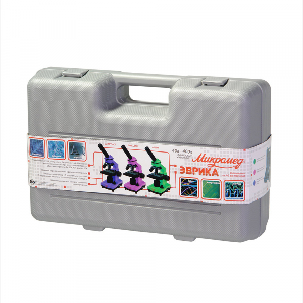 • Микроскоп школьный Эврика 40х-400х в кейсе (аметист)