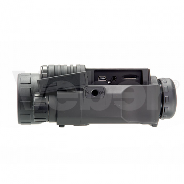 Цифровой монокуляр ночного видения оборудован встроенным видеорекордером, который позволяет делать цветные фотоснимки и записывать видеоролики со звуком и максимальным разрешением 640x480 пикселей. Все изображения сохраняются на карту памяти microSD, файлы можно перенести на компьютер с помощью кабеля miniUSB.