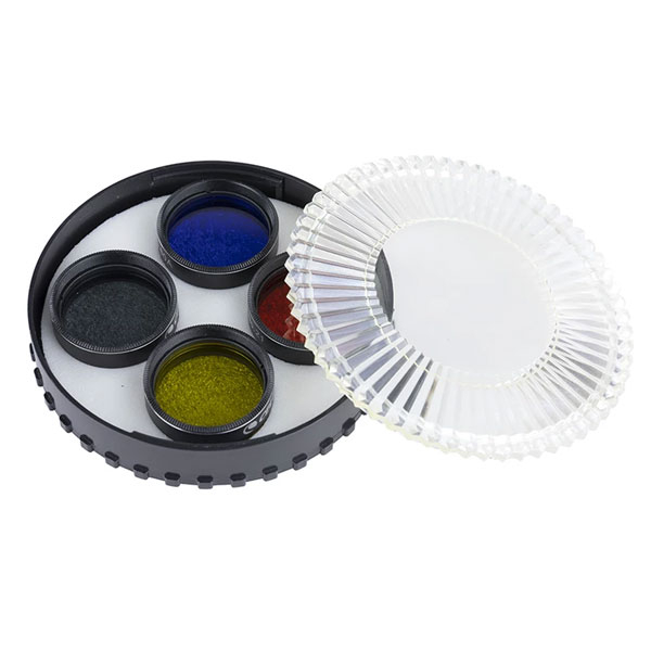 Набор цветных фильтров Celestron, 1,25" Окулярные светофильтры предназначены в первую очередь для наблюдения Луны и планет. Они помогают вырезать из входящего светового потока необходимую часть спектра, выделяя на поверхности планет невидимые ранее детали. Набор включает фильтры 21(оранжевый), 80A (голубой), #12(желтый), ND96-03 (нейтральный). Применяются с окулярами диаметром 1,25". Все фильтры заключены в оправу из черного анодированного алюминия, названия фильтров выгравированы на боковой поверхности оправы. Фильтры изготовлены из полированного плоско-параллельного оптического стекла и покрыты антибликовым покрытием для минимизации искажений и повышения контраста. Каждый фильтр имеет две резьбы – это дает возможность складывать фильтры вместе для комбинированной фильтрации входящего света. |