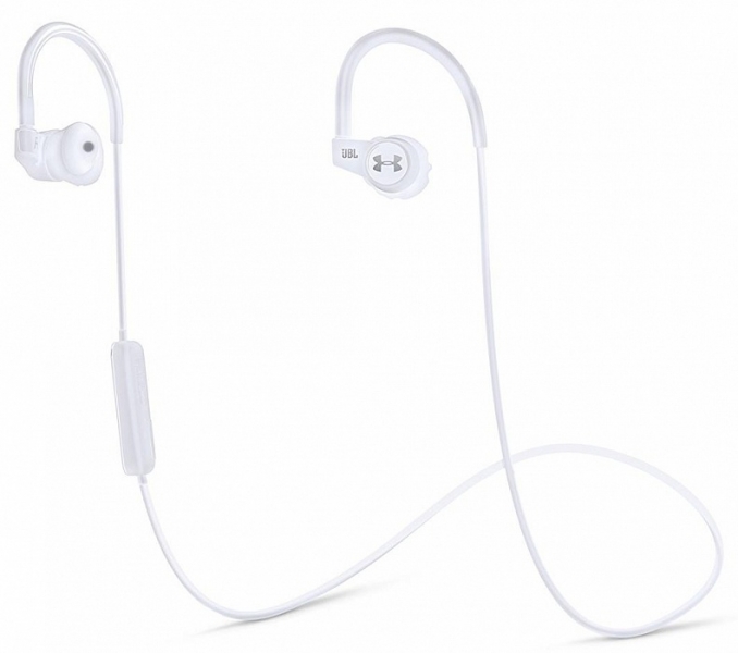 Наушники беспроводные JBL Under Armour Heart Rate JBL Under Armour Heart Rate - это удобные и стильные наушники с микрофоном, предназначенные для активных тренировок. Модель обладает защитой от влаги и пота, что обеспечит сохранность наушников при длительном использовании. Ключевой особенностью модели является встроенный датчик сердечного ритма, который позволяет передавать данные о работе сердца на дисплей смартфона. JBL Under Armour Heart Rate обладают продуманной конструкцией амбушюр, позволяющей надежно зафиксировать наушники в ушных раковинах. На кабеле имеется трехкнопочный пульт управления и разъем для зарядки. В комплекте поставляются три пары амбушюр и пять пар ушных креплений различных размеров. JBL Under Armour Heart Rate позволяет проигрывать музыку с любых устройств, в которых имеется Bluetooth 4.2. Встроенный аккумулятор обеспечит работу до 5 часов без подзарядки. Наушники используют динамические драйверы диаметром 5.8 мм, что обеспечит чистый звук без помех в частотном диапазоне от 10 до 22000 Гц. Максимальный уровень громкости данной модели достигает 111 дБ.