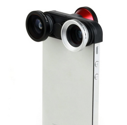 Объектив 4-in-1 для iPhone - уникальное дополнение к Вашему телефону, которое существенно расширит Ваши возможности в фотографии. Он включает в себя 4 объектива: широкоугольный, объектив "Pыбий глаз", макрообъектив и фронтальную камеру, которые заключены в металлический миниатюрный корпус. Фишай объектив позволяет получить бочкообразные изображения с углом обзора 180 градусов. Широкоугольный объектив будет полезен при съемке пейзажей. Макрообъектив позволяет получить изображения на расстоянии 10-15 мм от объекта. Четвертый объектив предназначен для фронтальной съемки.