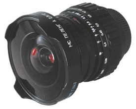 - просветленный, сверширокоугольный объектив, относящийся к классу диагональных "фишаев", то есть полученный кадр будет целиком занят изображением. Угол обзора объектива составляет 180 градусов по диагонали. Управление диафрагмой и фокусировка осуществялются вручную.
