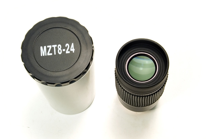 Оптическая схема окуляра позволяет изменять фокусное расстояние в диапазоне 8–24 мм. На корпус окуляра нанесена специальная шкала, которая позволяет с максимальной точностью выставить желаемое фокусное расстояние. Все оптические компоненты окуляра изготовлены из стекла, на них нанесено многослойное просветляющее покрытие, что гарантирует отличное качество изображения.