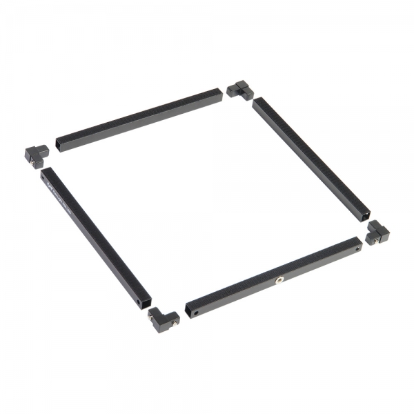 Каркас осветителей серии FlexLight представляет собой сборную систему рамок, что позволяет из нескольких осветителей собрать один большой для создания подходящего размера. На каркасе имеется монтажное отверстие 1/4" для установки на стойки или другие опоры. Лента-липучка приклеена на каркас с двух сторон и используется для крепления светодиодного мата и рассеивателя.