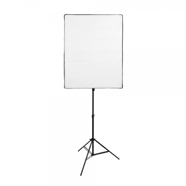 В комплект входит прямоугольный световой модификатор размером 60х80 см, поддерживаемый 4-мя стальными спицами, которые устанавливаются в осветитель KeyLight 425 и формируют монолитную конструкцию. Внутри софтбокса находится фактурная серебристая ткань, спереди на липучки крепится рассеиватель. Софтбокс создает мягкое рассеянное освещение без резких теней.