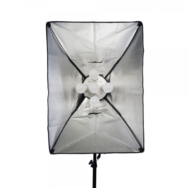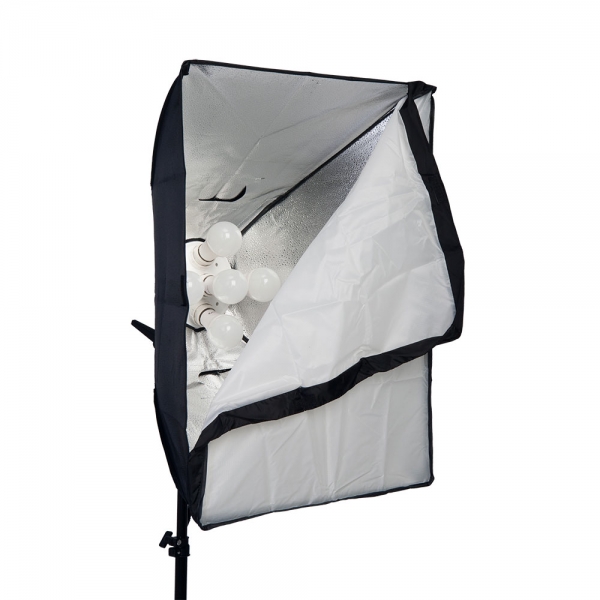 Falcon Eyes KeyLight 518 SB5070 LED - светодиодный комплект предлагает фотографам и видеооператорам готовое решение, подходящее для съемки в различных жанрах – от съемок на документы до съемки рекламных каталогов. В комплект входит светильник с 5 патронами E27, 5 светодиодных ламп с дневным светом (5400К) мощностью 18 Вт каждая, софтбокс 50х70 см и 3-х секционная стойка высотой 190 см.