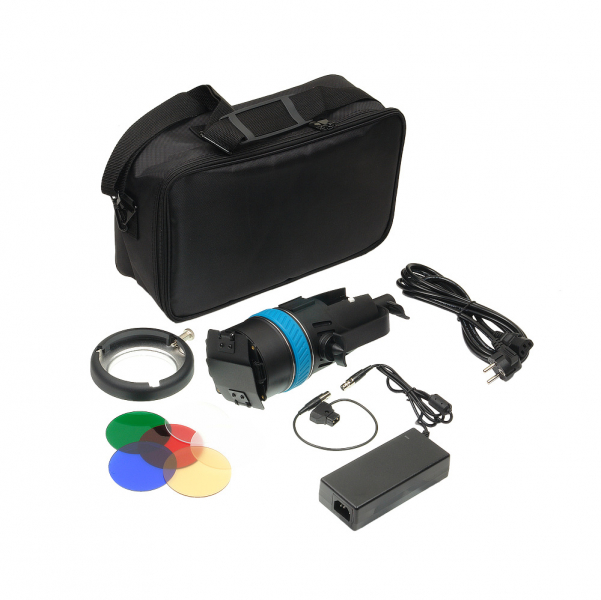 Светофильтры позволяют понижать выравнивать световой поток и создавать художественные эффекты. Цвета фильтров: желтый, красный, синий, зеленый, белый рассеивающий и прозрачный (защитный фильтр). Светофильтр устанавливается в оправу линзы Френеля, для этого необходимо снять металлические шторки или адаптер Bowens с осветителя.