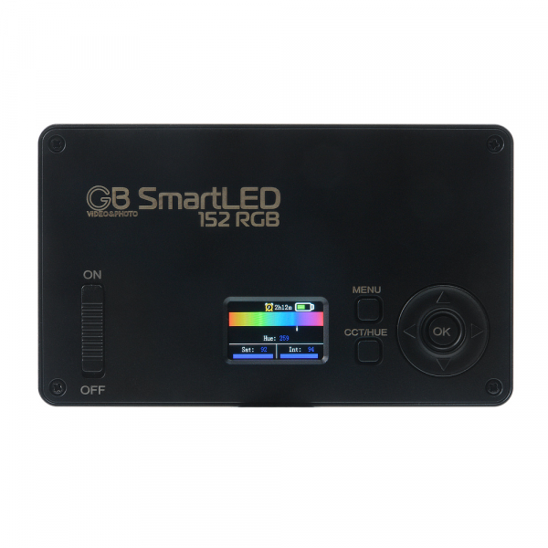 Осветитель светодиодный накамерный GreenBean SmartLED 152 RGB – это миниатюрный, но мощный источник света размерами 125х75х15 мм со встроенным аккумулятором и набором цветосветовых эффектов, хранящимся в памяти устройства. Регулируемая цветовая температура, индекс цветопередачи CRI > 95 позволяют использовать его в качестве накамерного осветителя с возможностью плавного изменения светового потока «белого» света от теплого «галогенового» (3000 К) до холодного (6500 К). Мощность светового потока регулируется от 0 до 100% с шагом 5%. Цветовые динамические режимы Fade, Strobe, Pulse и Scene, создаваемые RGB светодиодами, используются на съемочной площадке для создания различных эффектов – гаснущей лампы, вспышек дискотечного стробоскопа, освещения от полицейской машины, мерцание экрана телевизора, вспышки фотоаппарата и других.