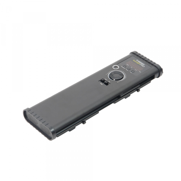 Осветитель светодиодный GreenBean SunLight PRO 340 LED GreenBean SunLight PRO 340 LED – cветодиодный осветитель для студийной кино-, теле- и фотосъемки. Поддерживает протокол DMX512. Позволяет плавно регулировать мощность светового потока (10–100%). Источник света – светодиодные матрицы суммарной номинальной мощностью 340 Вт. При любой яркости индекс цветопередачи CRI составляет более 95. Особенность модели – внешний блок управления. Благодаря этому вес самого осветителя – всего 2 кг, а всеми настройками можно легко управлять не снимая осветитель со стойки. Блок управления с валкодером и цифровым дисплеем снабжен ремнем для переноски или подвешивания на стойке. Длина кабеля для соединения блока с осветителем – 1,9 м. На расстоянии до 50 м работой осветителя можно также управлять с 99-канального пульта. Малошумные вентиляторы и автоматическая защита от перегрева позволяют длительно использовать осветитель при полной мощности. Рефлектор диаметром 175 мм крепится на осветитель посредством байонета Bowens. Его внутренняя поверхность имеет серебристое фактурное покрытие. На рефлекторе предусмотрен держатель для зонта. Для питания осветителя и блока используется сетевой адаптер или 2 аккумуляторные батареи V-mount (приобретаются отдельно). Сетевой адаптер с выключателем снабжен ремнем для переноски или подвешивания на стойку. Металлический корпус осветителя устойчив к механическому воздействию. Металлический кронштейн типа «лира» позволяет отрегулировать наклон осветителя и надежно закрепить в нужном положении с помощью фиксатора с зубчатым соединением и резиновой прокладкой. В комплект входит кофр с органайзером внутреннего пространства.