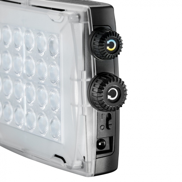 Портативный гибридный светодиодный прибор нового поколения. Диммерная регулировка цветовой температуры 3100-5600 К, освещенность 900 люкс на расстоянии 1 м, регулировка степени освещенности 0-100%. Благодаря отличной цветопередаче (CRI> 93), прибор позволяет с высокой точностью воспроизвести цвета и оттенки. В приборе предусмотрено три вида питания: от шести АА батареек, от сети (адаптер в комплекте) или от аккумулятора (адаптер в комплекте). Комплектуется диффузным фильтром и поворотным кронштейном для установки. Характеристики
