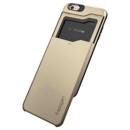 Чехол Slim Armor CS, предназначенный для iPhone 6 Plus / 6S Plus, имеет сдвигающуюся заднюю стенку, под которой расположен футляр для двух кредитных карт. Для удобства извлечения карты располагаются одна над другой. Внутренняя часть футляра имеет подложку из мягкого термополиуретана, препятствующую повреждению карт. Аксессуар изготовлен по технологии Air Cushion, усиливающей противоударные свойства и предохраняющей смартфон во время падения. По углам чехла располагаются воздушные полости, гасящие силу удара. Чехол двухслойный. Внешний слой сделан из твердого поликарбоната. На внутренний слой из TPU нанесен рисунок-«паутинка», также усиливающий амортизацию при ударе. SGP Slim Armor CS удобен, функционален, практически не сказывается на размерах смартфона и отлично выглядит.