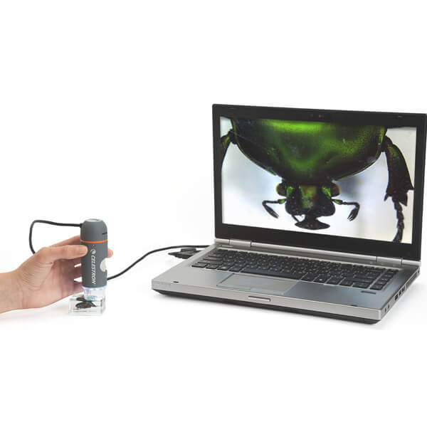 Длинный кабель USB 2.0 позволяет удобно подключить микроскоп к компьютеру или ноутбуку. Изучение образцов и обработка изображения происходит с помощью программы Micro Capture Pro. Помимо записи и редактирования фотографий и видеороликов, программа умеет измерять длину , периметр, радиус, диаметр объекта, а также разнообразные углы. Этот микроскоп можно применять в различных производственных работах, для проверки качества или проверки размеров. Портативный цифровой микроскоп Celestron PRO очень прост в использовании. Небольшие размеры микроскопа делают его очень удобным для домашнего использования. Так же микроскоп подходит для использования в учебном процессе в школах и других учебных заведениях. Купите такой микроскоп в подарок, возьмите микроскоп с собой на отдых, в путешествие.