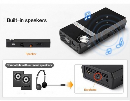 • Устройство оснащено медиаплеером, воспроизводящим файлы с MicroSD и SD / MMC карт, поддерживая основные форматы DIVX / MP4 / XVID, помимо этого, проектор оборудован HDMI входом для подключения к нему напрямую ноутбука, компьютера или игровой приставки;