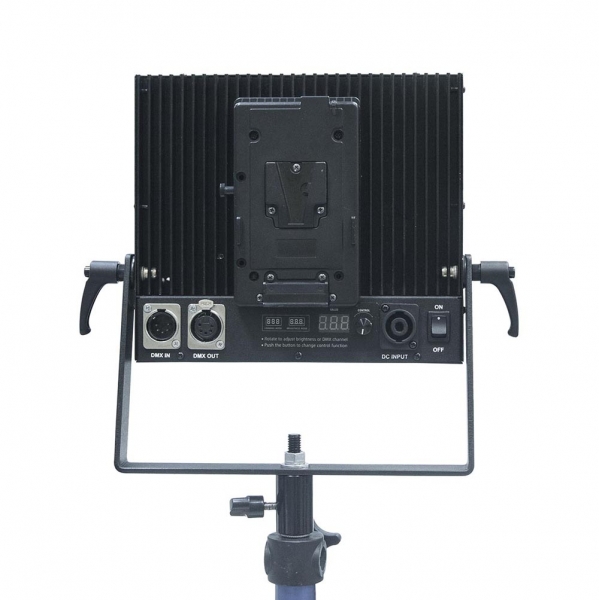 Универсальный осветительный прибор. Можно использовать в качестве заполняющего (заливающего), фонового и рисующего света на выезде и в студиях. Сменные блоки коллиматоров позволяют выбрать оптимальный угол расхождения светового пучка. Прочный и легкий алюминиевый корпус и наличие площадки для крепления аккумуляторов V-Lock делают данный светильник незаменимым на выездных съемках. Вынесенный наружу радиатор обеспечивает эффективное охлаждение и долговечность устройства. Встроенный DMX-блок позволяет управлять яркостью и цветовой температурой светильника как удаленно с пульта DMX, так и с помощью ручки управления, расположенной на осветитель- ном приборе. При этом на цифровом табло отображается яркость (в процентах от максимальной) или номер канала DMX. Низкое энергопотреблениеи мощный световой поток позволяет применять такие светильники как в студийных условиях, даже при ограничении на потребление электроэнергии, так и при выездной съемке – абсолютно автономно.