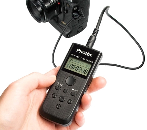 Phottix® Nikos является интервалометром, т.е. цифровым таймером, предназначенным для спуска затвора фотокамеры через определённые промежутки времени. Phottix® Nikos может быть использован как обыкновенный проводной пилот для спуска затвора вашей фотокамеры. Вы можете использовать функциональную возможность автоспуска с задержкой, либо интервального таймера для произведения снимков с постоянным временным интервалом (цейтраферная фотосъёмка). Подлинное преимущество Nikos проявляется при совмещении различных функций таймера. Phottix® Nikos также является простым в употреблении пультом управления вашего цифрового фотоаппарата DSLR. С его небольшим размером и весом, он легко войдёт в сумку вашего фотоаппарата. Антистатический ремешок в комплекте позволяет Вам без труда повесить таймер на штатив. Функции Phottix® Nikos: