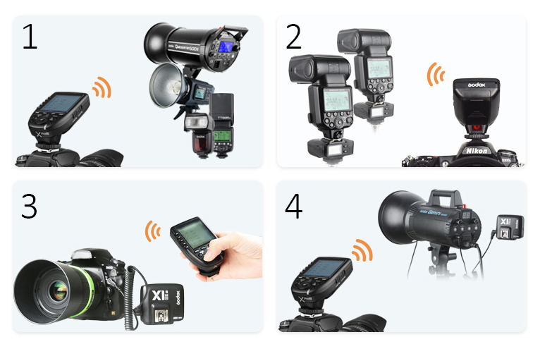 Встроенная система беспроводной синхронизации Godox 2,4G X В качестве беспроводного синхронизатора вспышек Godox (накамерных, аккумуляторных и студийных вспышек) В качестве беспроводного синхронизатора накамерных вспышек Sony В качестве дистанционного пульта управления вспышкой В качестве пульта управления вспышкой (без системы Godox X) с гнездом для синхрокабеля 2,5 мм