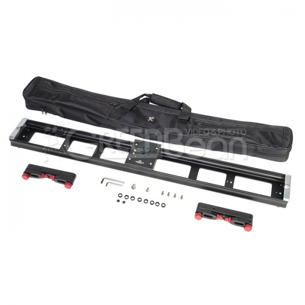 Каретка оборудована стопорным винтом с двусторонним стояночным тормозом, при завинчивании рукоятки происходит одновременный выпуск двух тормозных колодок, которые надежно фиксируют каретку, благодаря этому слайдер можно использовать даже с тяжелыми профессиональными камерами.