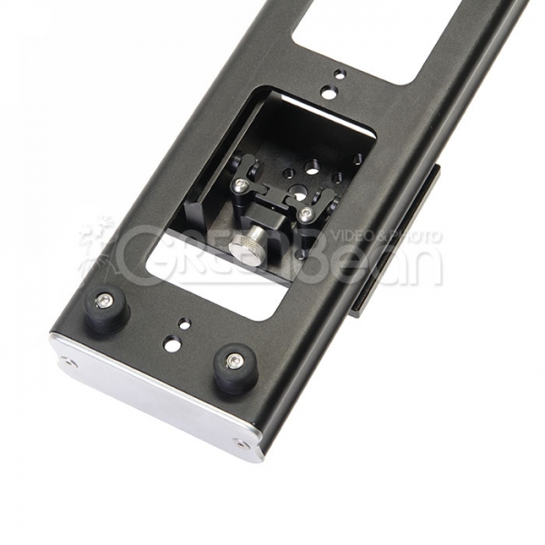 На каретке находятся 11 монтажных резьбовых отверстий 1/4" и 3 резьбовых отверстия диаметром 3/8", которые позволяют размещать на каретке аксессуары и вспомогательное оборудование. Центральное отверстие 3/8" без резьбы предусмотрено для крепления штативной головы (винт в комплекте). Большое количество монтажных отверстий обеспечивает универсальность установки и использования слайдера. Дополнительно можно приобрести базу с чашей GreenBean Video Base 100/75 для установки штативных голов с шаровым основанием.