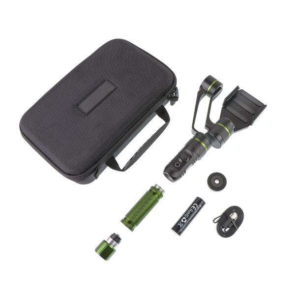 Корпус стабилизатора изготовлен из алюминиевого сплава, на рукоятку присутствует насечка для лучшего удержания. Питание прибора происходит от одного аккумулятора типа 18650 Зарядка аккумулятора осуществляется через микро-USB порт на корпусе прибора. Время непрерывной работы — 5 часов (с аккумулятором ёмкостью 2600 мАч).