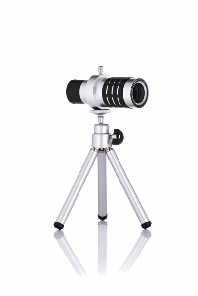 Телеобъектив для iPhone 5 и 5S - позволяет получить фотографии с 12-кратным увеличением. Угол обзора: 12 градусов Диаметр объектива - 21 мм Размер: 33х94 мм Минимальная дистанция фокусировки: 3 м