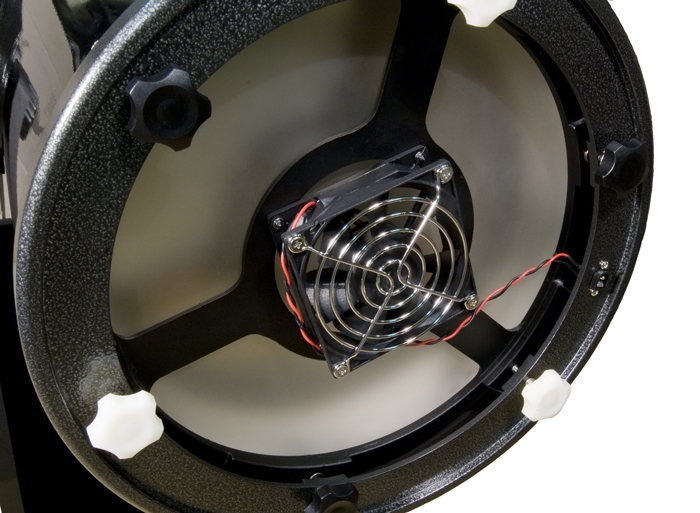 Оптическое стекло BK-7, из которого изготовлены элементы телескопа, гарантирует отличное качество изображения, а встроенная охлаждающая система главного зеркала предотвращает его деформацию и минимизирует искажение при наблюдении. Система охлаждения работает от шести пальчиковых батареек (не входят в комплект). Безлюфтовый фокусировщик Крейфорда обеспечивает точнейшее наведение резкости; также он снабжен компрессионными кольцами, позволяющими безопасно устанавливать окуляры с посадочным диаметром 1,25" и 2". Управление по азимутальной оси улучшено за счет роликовых подшипников, сглаживающих движение.