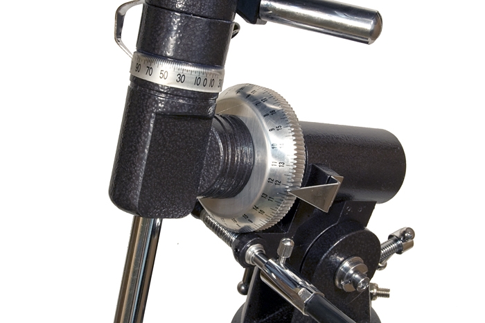 Телескоп установлен на экваториальной монтировке немецкого типа, которая идеально подходит для астрономических наблюдений, особенно если требуется использовать высокие увеличения (например, наблюдения планет и Луны). Такая монтировка вращается параллельно небесному экватору, что дает возможность компенсировать суточное вращение небесной сферы вращением только одной ручки. Монтировка имеет координатные круги для наведения с использованием системы экваториальных координат. Также она снабжена механизмами тонких движений с длинными гибкими ручками, которые уменьшают вибрации при ведении телескопа.