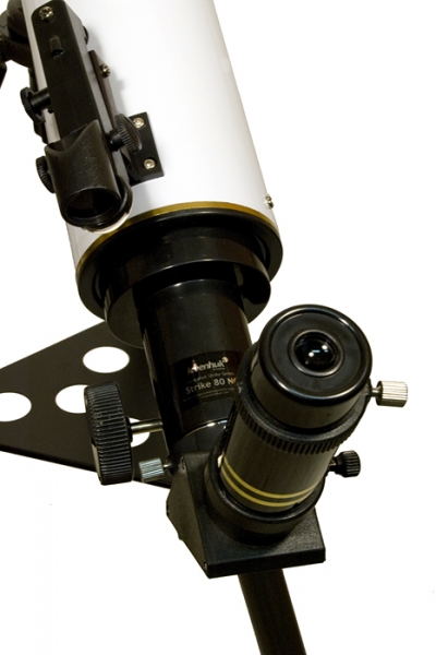 • Труба телескопа Strike 80 NG на симметричной английской (альтазимутальной) монтировке с ярмом и осью склонений.