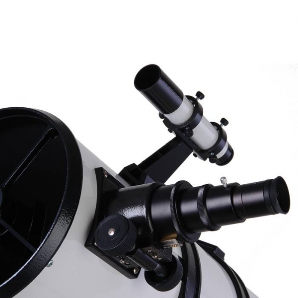Телескоп поставляется с профессиональной монтировкой немецкого типа EQ4 со встроенным искателем полюса (это оптическая трубка с перекрестьем, интегрированная внутрь монтировки). Мощный алюминиевый штатив снабжен металлическими распорками, на которые можно установить столик для аксессуаров. В общем, Veber 800/203 очень надежный, устойчивый телескоп для серьезных наблюдений (даже исследований!) с превосходным качеством изображения и весьма разумной ценой.