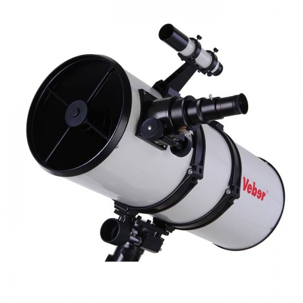 Самый "могучий" в линейке Ньютоновских телескопов Veber - и с точки зрения диаметра зеркала и с точки зрения монтировки. Мы рекомендуем его для серьезных и подготовленных. При такой апертуре его длина всего 520 мм, что делает прибор удобным для использования даже на балконе. В него можно увидеть лунные кратеры и образования диаметром около 2 км, 6-7 спутников Юпитера, даже спиральные ветви слабой галактики Водоворот, удаленный от нас на целых 35 миллионов световых лет! Однако: с окуляром PL25 вы получите увеличение 32х, с которым удобно вести наземные наблюдения. При этом ближняя точка фокусировки составит всего 10 м. Исполнение телескопа - самое профессиональное. Металлические: корпус, кольца крепления, заглушки, все детали окулярной части, включая подвижные и неподвижные части фокусера. Пластиковый только корпус 6-ти кратного искателя. Исполнение телескопа также можно назвать дизайнерским - настолько хорошо сочетаются черный блестящий корпус и окрашенные зеленоватой эмалью части монтировки (включая противовесы) и элементы штатива.