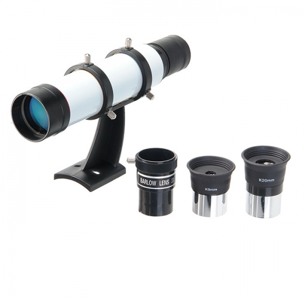 Просветленный ахроматический объектив с диаметром 90 мм, собирает света на 60% больше, чем 70 мм и позволяет наблюдать не только небесные, но и очень удаленные земные объекты. Картинка резкая, без окрашенности изображения по краю поля зрения. В этот телескоп вы сможете увидеть детали на дисках планет, кратеры Луны, многие туманности и звездные скопления (вплоть до 13 m звездной величины). Для земных наблюдений мы рекомендуем использовать окуляр PL20, с которым увеличение телескопа будет 45х при этом ближняя точка фокусировки составит 22,5 м