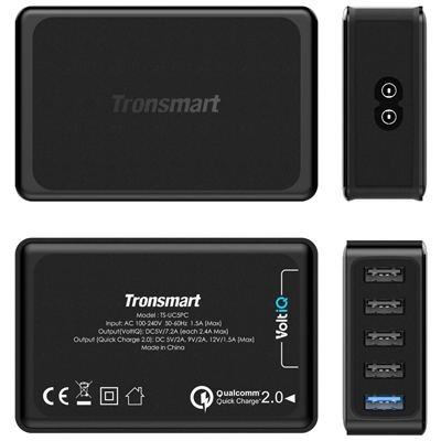 Китайская компания Tronsmart предлагает настольное зарядное устройство, имеющие сертификаты CE, FCC, RoHS, PSE и гарантирующее быструю и безопасную зарядку. Tronsmart 5USB Quick Charge 2.0 Rapid Desktop Charger делает зарядку смартфонов необычайно быстрой и удобной.
