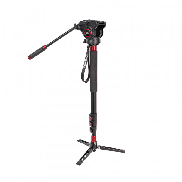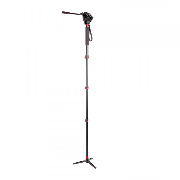 Диаметр секций — 33 / 29 / 26 / 22 мм. При ослаблении клипсового фиксатора — возможна регулировка усилия зажима гайкой под шестигранный ключ (идёт в комплекте). На верхней секции предусмотрены: накладка-рукав из вспененного материала для комфортного удержания монопода в холодное время года и кистевой ремень. На круглой площадка верхней базы монопода находится (реверсивный) винт 1/4″ — 3/8″, на который крепится видеоголовка, а при необходимости непосредственно камера. Для выставления камеры по горизонту, в основании головки имеется пузырьковый уровень.