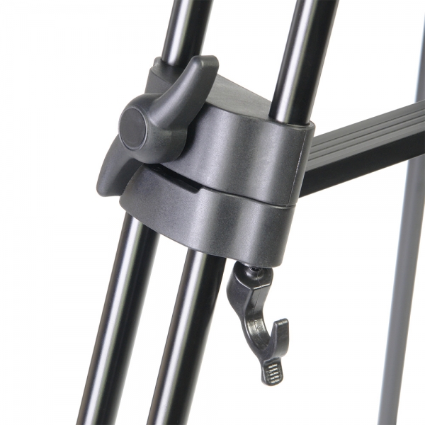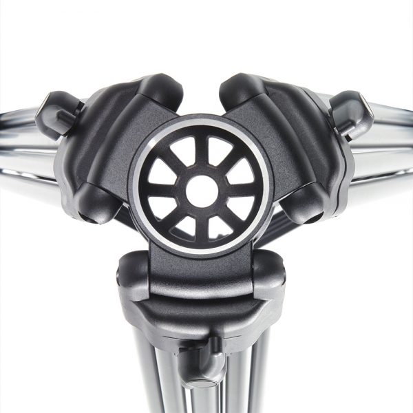 3-секционные сдвоенные телескопические алюминиевые ноги обеспечивают компактность и малый вес. Модернизированные зажимы надежно и быстро блокируют секции. Для усиления штатива используется верхняя растяжка, благодаря этому штатив можно использовать на неровных поверхностях (камнях, ступенях лестницы и т.д.). На концах штативных ног размещены резиновые опоры препятствующие скольжению. Для дополнительной устойчивости в ветреную погоду в одной из ног штатива находится подпружиненный трос с крюком для установки груза противовеса.