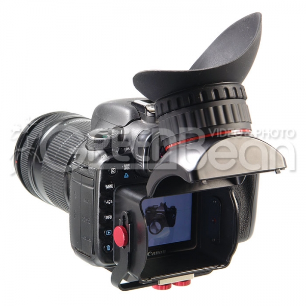 GreenBean VF-3X PRO – предназначен для установки на зеркальные камеры с 3"/3.2" ЖК-экраном. Фокусирующая линза с 3-x кратным увеличением. На окуляре находится кольцо диоптрийной коррекции, это поможет настроить изображение под индивидуальные особенности зрения. Видоискатель соединяется с площадкой, установленной на камере, с помощью магнитного быстросъемного крепления. Рамка, соединяющая видоискатель и площадку, позволяет отрегулировать положение видоискателя в пространстве и имеет возможность движения в направлениях вверх/ вниз / влево / вправо. Если необходим быстрый доступ к ЖК-экрану без демонтажа видоискателя, можно откинуть окуляр вверх и легко получить к нему доступ. Положение видоискателя регулируется по вертикали и горизонтали (относительно площадки) в пределах 20 мм.